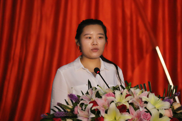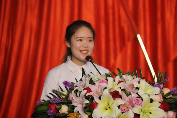 随后,2012级汉语言文学1班王润垚同学代表全体毕业生发言。她和大家分享了自己大学四年的心得体会:一是永远充满理想,有明确的奋斗目标;二是具备适应社会的能力,学会接受和改变;三是常怀感恩之心,常念相助之人。外语系14级英语1班的李霜瑜代表在校生对毕业生表达了美好祝愿:“你们在这方土地上与朝气蓬勃的母校一同成长,凭借八字校训打下的灵魂烙印,必将在以后的道路上乘风破浪,成为人生赢家!”