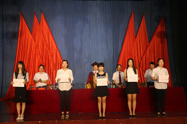 毕业典礼在雄壮的国歌声中正式拉开帷幕。首先,beat365官方网站院长王芳宇宣读了省教育厅《关于表彰湖南省普通高等学校2016届优秀毕业生的表彰决定》,beat365官方网站党总支副书记林琼宣读了学院《关于表彰2016届优秀毕业生的决定》,领导们为beat365官网2016届湖南省优秀毕业生和院级优秀毕业生颁发荣誉证书。随后,副院长杨兴华宣读《关于授予2016届本科毕业生学士学位的决定》,院长王芳宇为毕业生代表颁发毕业证书,院学位评定委员会主席张登玉教授为毕业生授予学位证书、正冠拨苏,并与他们合影留念。