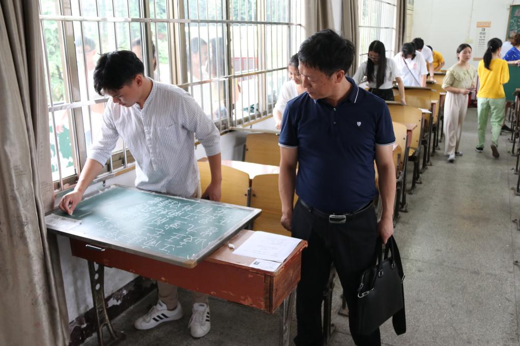 2019年6月16日下午,beat365官网教学工作办公室组织2017级860名师范生在综合教学楼开展了粉笔字技能考核,全体院领导莅临指导。