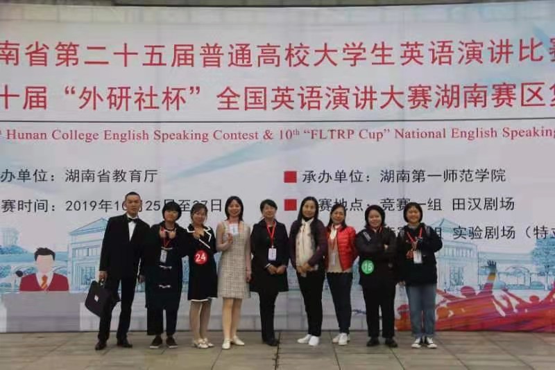由湖南省教育厅主办的湖南省第二十五届普通高校大学生英语演讲比赛暨第十届“外研社杯”全国英语演讲比赛湖南赛区复赛于2019年10月26、27日在湖南第一师范学院顺利举行。beat365官网获团体三等奖,其中外语系李莎同学荣获英语专业组三等奖,中文系张丽莎、张艺同学分别获得非英语专业组三等奖。