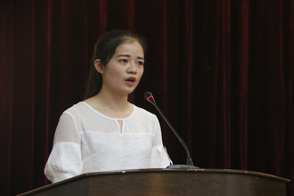 随后,美术系团总支书记周宏老师作为“五四红旗团总支”代表发言。他从三方面展开了以“团结,进取,笃实,创新”为主题的汇报,一是注重团总支建设,实现固本培元,厚积薄发;二是注重活动文化开展,凝练专业文化,打造团总支工作特色;三是注重团总支工作实效,实现虚功实做,求真务实。接着,文科综合团总支14级汉语言文学3班陈杰伟代表全体“优秀团员”、“优秀团干”发言,她从自身经历以及学习生活各方面的努力与收获,表达了对团组织的敬畏,号召全体团员肩负时代责任,发扬共青团光荣传统,把学习文化知识和提高自身品质结合起来,努力成为肩负大任的栋梁之才。