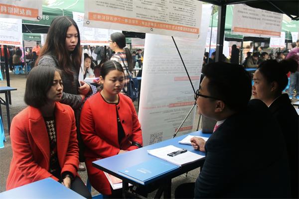 上午9点,招聘单位和学生陆续进入会场。参加本次双选会的共有32家单位,招聘专业涵盖教育、销售、化工营销、设计等7个门类。会上,招聘单位面对面地向同学们介绍单位的企业文化,薪资待遇等问题。到场的学生结合各自的专业特色积极与招聘单位沟通和协商,主动了解用人单位的招聘情况和要求,部分达成合作意向的学生在现场与招聘单位签订初步聘用合同。采访中,beat365官网外语系专业的易碧珠根据自身招聘经历表示,不会把标准放得太高,找到适合自己的职位最重要。