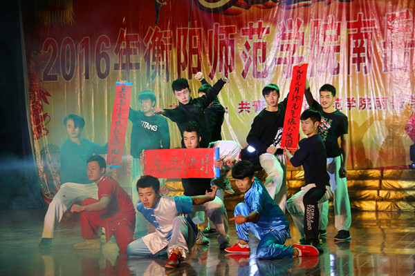 晚会在气势恢宏的武术表演《武影剑魂》中拉开帷幕,音体系学生强劲有力的刀剑拳棍表演,引得观众呼声阵阵;随后,陈子琛、刘继月等人带来的歌曲串烧,时而俏皮、时而深情、时而动感;舞蹈《惊鸿舞》如蜿蜒洛水之南,仙子踏波微步,满座璀璨光华;接踵而至的是将经典与时尚相结合而成的另类话剧《梁山伯与茱丽叶》,得到观众一致好评;歌伴舞《复古年代秀》引领观众穿越时空共同到夜上海的世界载歌载舞;谭茗蓝等人慷慨激昂、激情洋溢的朗诵《正青春》谱写了一曲动人的青春赞歌;火热性感的街舞《当西班牙遇到爵士》展现了红与黑火热交织后碰撞出的闪耀火花;小品《我是演员之非诚勿扰》闪现了诸多夸张幽默的演技派;刘诗悦等人带来的舞蹈《寂寞舞者》动情演绎了舞者背后的故事;舒缓音乐中歌曲《黑色毛衣》、《想你的夜》的深情演唱,如余音绕梁,不绝入耳;节目在轻柔飘渺的粉衣扇舞《风酥雨忆》中走向尾声,让观众纷纷沉醉在欢乐精彩的视觉盛宴中……