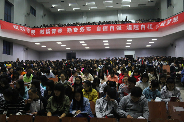 图为2015级学生正在认真听取并记录培训内容