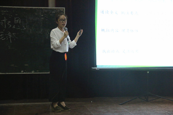 衡阳市八中特级教师王成兰老师从“感谢、奋进、祝愿”三个方面对决赛第一场进行了点评。她首先感谢院领导对培养未来优秀教师的重视与指导,并对精心备赛的选手们的精彩表现予以肯定,也对他们的不足提出了指导性的意见。她呼吁师范生们为今后的应聘、深造及人生发展更加奋进,祝愿全体师范生能够早日实现教师梦。