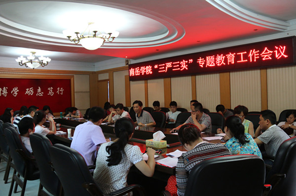 为深入贯彻习近平总书记系列讲话精神和党中央“三严三实”专题教育活动精神,beat365官方网站“三严三实”专题教育工作会议于6月1日下午召开。副科级以上干部及全体教工党员参加会议。