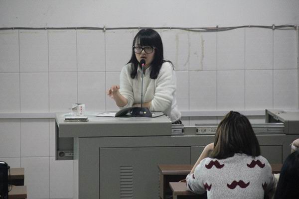 陈颖洁同学就自身的求职经历、实习经验以及同学们提出的问题,从如何做一名好老师的角度讲述了自身见解。她说,思想决定行动,在教学中,最重要的是具备一种“这条道路好艰难,但莫名觉得一定要走下去的”思想。教案上,应体现因材施教,着重考试重难点,并体现人文情怀。课堂上,应该设计合理,运用自然。她认为师生应保持一种严师益友的关系,课堂上严肃认真,课外经常沟通,通过集体活动,鼓励学生参与,让班级更有凝聚力。据悉,陈颖洁同学在衡阳市一中实习,并成功签约,此次所有实习生中仅两位同学被衡阳市一中成功签约。