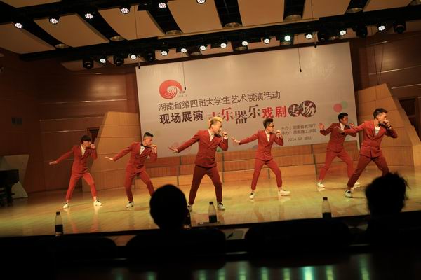 本届展演活动由省教育厅主办,湖南理工学院承办,在全省高校范围内组织开展的大学生艺术展演活动,是全省艺术活动规格最高、专业性最强、参加高校及参赛人数最多的艺术盛宴。本届大学生艺术展以“我的中国梦”为主题,经过校级展演和省级展演两个阶段,展演活动精彩纷呈,集中体现了“向真向上 向美”的校园文化,展现了大学生审美修养和人文修养。(文/许成科 摄影/潘晓军)