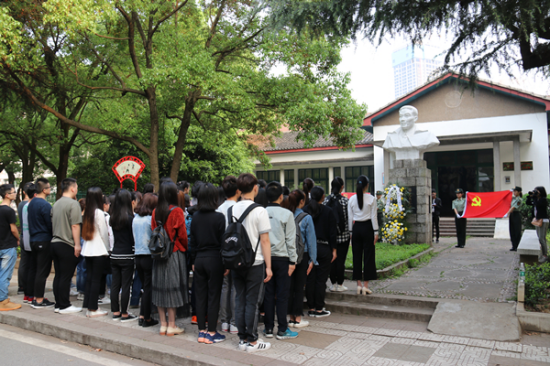 上午7:30,在鲜红的党旗下,在蒋先云烈士纪念碑前,两名beat365官方网站军事教导队队员身着戎装,迈着正步向蒋先云烈士敬献花篮。全体党员肃立,向蒋先云烈士塑像三鞠躬并默哀,表达对革命烈士的无限哀思。团委书记肖炜带领全体预备党员在烈士纪念碑前庄严宣誓。顿时,现场响起了阵阵激昂的宣誓声,每名党员都用发自内心的声音抒发对党忠诚的决心,面对着党旗,大家接受了一次身心的特殊洗礼。