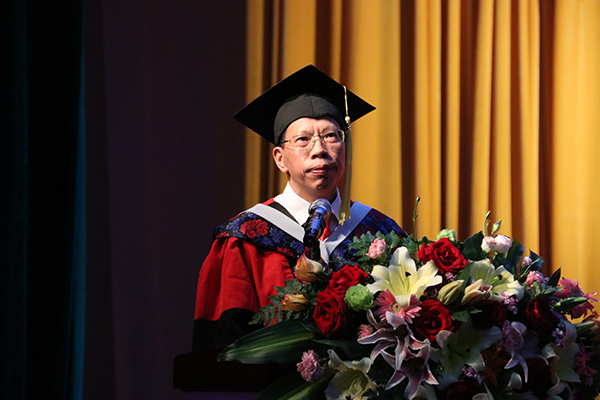 beat365官方网站院长王芳宇教授发表毕业致辞。首先,他代表学院向圆满完成学业的962名毕业生表示热烈的祝贺!向为同学们的成长付出了辛勤劳动的全体教职员工表示崇高的敬意!向始终关注并支持同学们刻苦学习的各位家长、亲友和社会各界人士,表示衷心的感谢!随后,他语重心长地谈到成才与成人这一话题。他说,希望每一个人在成才之前,能真正成人。希望毕业生们成为一个让自己不悔、让别人骨子里敬重、享受生活、享受工作、经得起时间检验和顶天立地的大写的中国人!最后,他赠予毕业生三句话:一是人之为人,有德为大;二是理想之光,永不泯灭;三是且行且学,终生不懈。