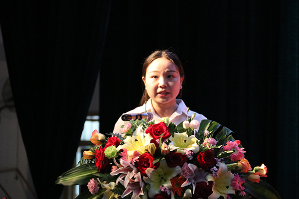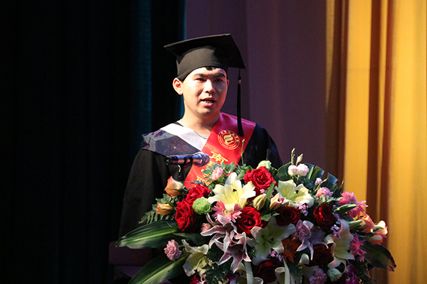 在校生段宏文同学代表在校生感谢学长、学姐在四年的学习、生活中所发挥的引领作用、示范作用及对学弟、学妹的关心和照顾情谊,并为毕业生送上祝福。