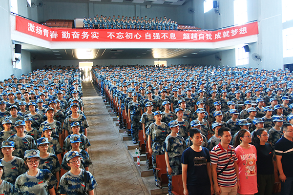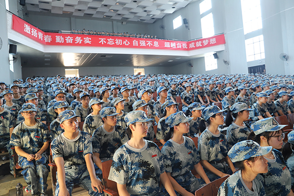 2019级新生开学典礼暨军训动员大会在激昂的校歌声中圆满落幕。本次大会的召开,营造了浓厚的开学气氛,开启了一千多名新生的追梦征途。