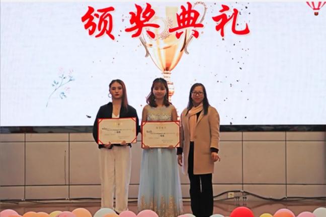 最后,省、市计生协领导、校领导为全国大学生青春健康歌唱比赛获奖选手颁奖。