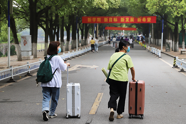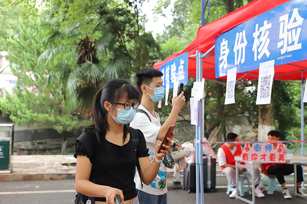 “踏进校门都是熟悉的面孔,细心的工作人员有条不紊地给我们核验身份、消毒、做防护,这样的温馨深入人心。在我们等待开学的过程中,是学校老师和每一位工作人员在守护着校园,为我们做好各项防护措施,感谢他们,也感谢学校。”2017级汉语言文学专业易诗一边扫描今日校园签到核验码,一边谈着自己的切身感受。