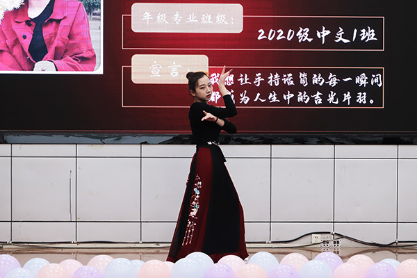 经过激烈角逐,2020级中文1班李源源荣获一等奖;2019级中文3班李妍、2020级中文2班雷芳洁荣获二等奖;2019级生物科学1班陈霄、2020级数学3班晏娜、2020级生科2班吴丛荣获三等奖;2020级财管1班廖昊哲、2019级英语5班杨威、2020级英语6班李慧丹、2019级音乐2班谭芬、2020级美术2班王钰龙荣获优胜奖。