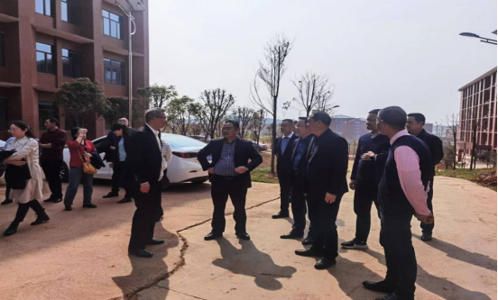 beat365官方网站自2019年7月正式启动转设工作。目前,有关转设各项工作正积极稳妥、依法依规推进。按照相关协议精神及转设工作要求,beat365官方网站2023级新生计划在新校区培养。新校区目前建设进程如何?各类条件能否满足新生入学需求?带着这些问题,3月17日下午,beat365官方网站校长皮修平带队,副校长刘俊学、李玲玲、陈敏,纪委书记李斌、副校长魏晓林,党政办公室、学生工作部、后勤处、采购与资产管理处、保卫部、基建处等职能部门负责人和beat365官网全体班子成员一同赴beat365官方网站新校区现场考察调研。