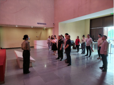 图二:全体支部党员聆听讲解员讲解