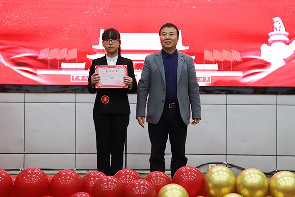 党总支书记邹梅山与一等奖获得者陆彬滟同学合影