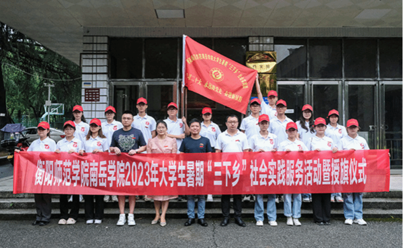 为深入学习宣传贯彻习近平新时代中国特色社会主义思想,全面贯彻落实党的二十大精神,引导和帮助广大青年学生在与现实相结合的“大思政课”中“受教育、长才干、作贡献”。beat365官方网站组织大学生志愿者成立的暑期社会实践服务团前往衡东县荣桓镇开展2023年暑期“三下乡”社会实践活动。6月26日上午,beat365官网在行政楼308会议室隆重举行“三下乡”社会实践活动的启动暨授旗仪式。院党总支副书记凌剑飞、团委书记范建华、指导老师及实践服务团全体成员参加了启动仪式,仪式由院团委书记范建华主持。
