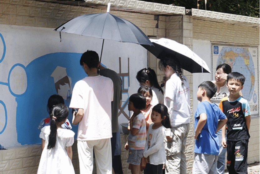 最后,为普及安全教育,支教组开展形式多样、内容丰富防溺水等中小学生安全教育系列活动,着力提高学生安全防范意识,增强学生自我防护能力。美术专业的志愿者充分发挥专业特长,绘制文化墙,通过墙绘艺术将安全教育知识以更加鲜活的方式传递给小朋友。