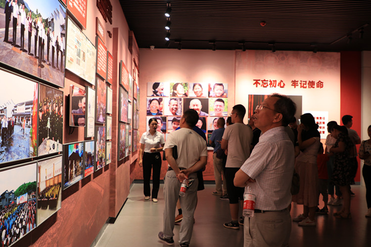 在沙洲村红色广场,全体党员面对党旗,重温了入党誓词。随后在讲解员的带领下,参观了沙洲村红色文化展览馆,认真聆听了对汝城县红色革命历史和半条被子等事迹的讲解。每一件实物,每一副图片,每一段文字都讲述着一个感人的故事,见证了一段艰难历程,折射着一种伟大精神。置身纪念馆中,全体人员仿佛重走了一次“红色之旅”,真切感受先烈们抛头颅、洒热血,时刻与人民在一起的伟大革命精神。