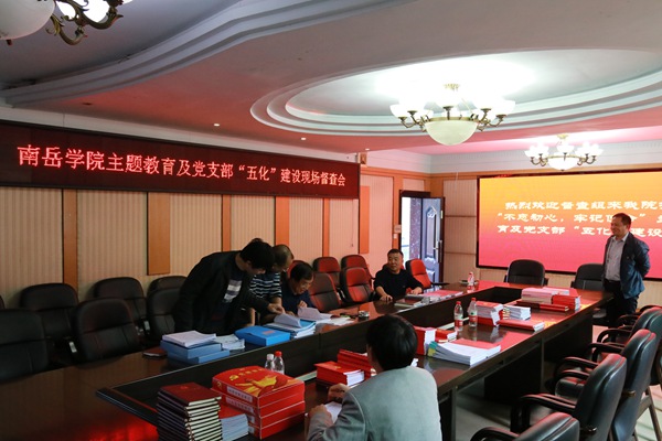 为认真开展“不忘初心、牢记使命”主题教育,扎实推进党支部“五化”建设工作,根据学校统一安排,11月12日下午,学校督查组廖杰峰、胡勇两位同志对beat365官网“不忘初心、牢记使命”主题教育和党支部“五化”建设工作进行了检查和指导。beat365官网党政领导及各党支部书记出席了此次督查会。