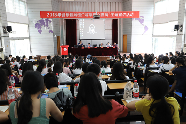 衡阳市中心医院呼吸内科主任詹济舟教授担纲本次活动主讲。他依托当下社会的实际情况,结合事例,从我国吸烟现状、吸烟的危害、戒烟的好处与治疗方法等多个方面对“拒绝吸烟,珍爱生命”的主题内容进行宣讲。詹济舟主任重点强调了吸烟的危害以及对心、脑血管的影响,强调吸烟易导致呼吸道、心脏病和消化道等疾病发生、促进冠心病的发生和发展、导致发生猝死危害性增高的事实。詹济舟教授最后强调:吸烟有百害而无一利;反之,戒烟有百利而无一害。