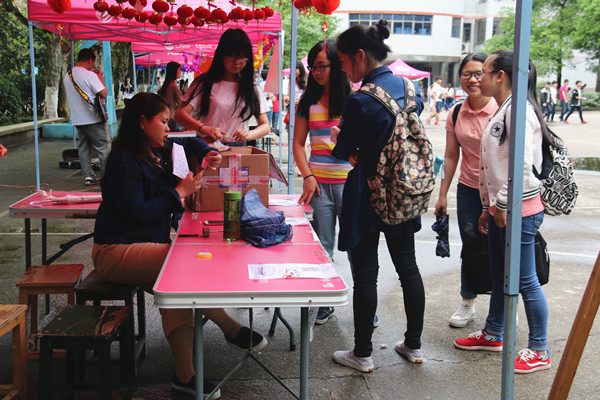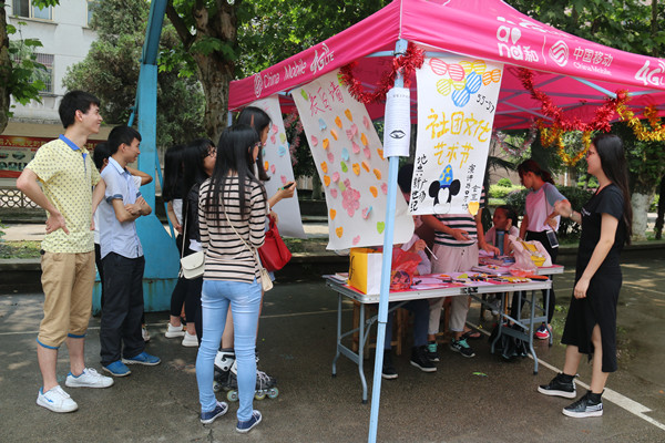 据悉,此次艺术节,beat365官方网站大学生青年志愿者协会、演讲与口才协会、计算机协会、27°文学社、X-family、原创音乐协会、二次元动漫社等二十三个社团在学院新世纪广场和计算机楼前进行了集中成果展示。其中,足球协会的足球知识问答活动激发了同学们的浓厚兴趣,许多同学为一个个问题而冥思苦想,绞尽脑汁;青年志愿者协会开展了以互帮互爱为宗旨的以“衣”传爱活动;梧桐树音乐协会的演唱者用细腻的嗓音获得了同学们不少赞赏;27°文学社的猜灯谜活动,吸引了大量学生前来挑战;X-family社团的现场舞蹈教学和二次元动漫社的cosplay展示更是让前来观看的学生目不转睛。各个展台热闹非凡,充满了活力与欢笑。