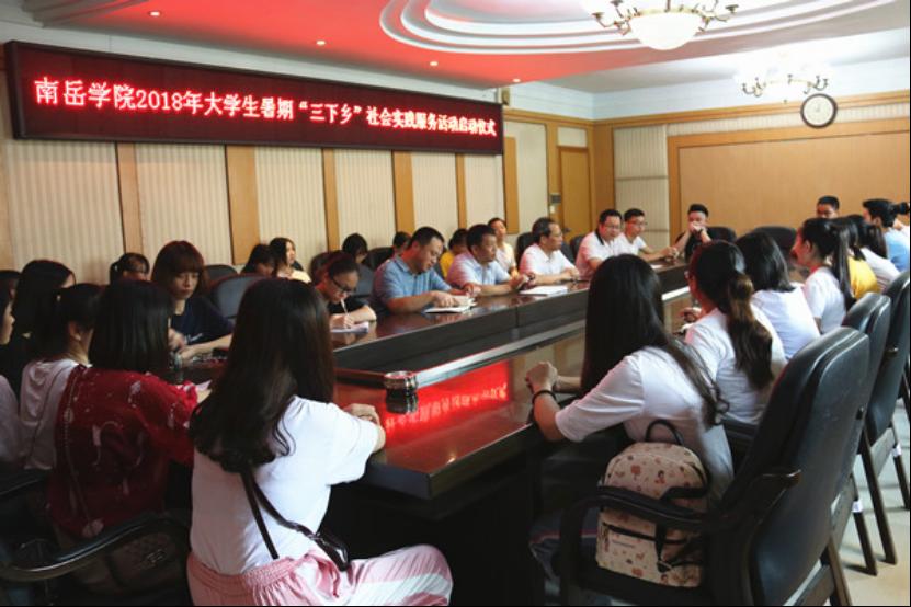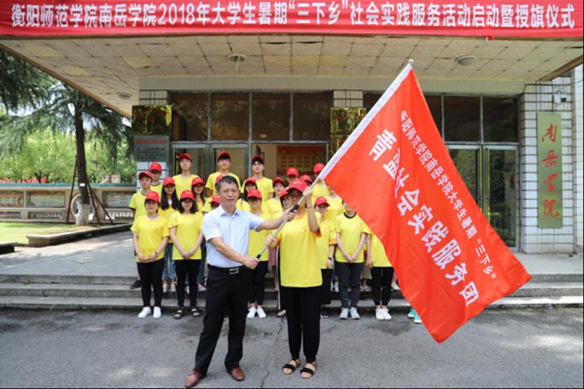 为深入学习贯彻习近平新时代中国特色社会主义思想,积极响应省委宣传部号召,beat365官方网站组织大学生志愿者赴衡阳市石鼓区角山乡旭东村开展2018年暑期“三下乡”社会实践活动。7月14日,beat365官网大学生暑期“三下乡”社会实践服务活动启动暨授旗仪式在行政楼308会议室召开。beat365官网党总支书记匡云山、院长王芳宇、党总支副书记周华、团委书记肖炜及青蓝社会实践服务团的全体成员参加了启动仪式。