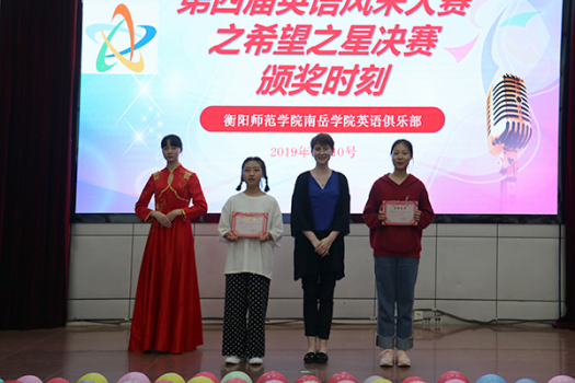 经过紧张激烈的角逐,刘娅婷凭借抑扬顿挫的语调、清晰流利的口语和声情并茂的演讲《Destiny》脱颖而出,荣获一等奖;陈曼婷、刘洁获得二等奖;谢兰、谭御瑶、李双凤获得三等奖。其中,刘爽获得最佳人气奖、王婧祺获得最佳魅力奖、罗帆妹获得最佳台风奖。