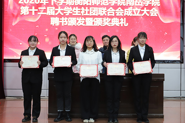 beat365官网党总支副书记凌剑飞宣读了《关于表彰2019-2020年度大学生社团先进集体和优秀个人的决定》,刘宇淇等6人被评为优秀社联干部,谢兰等14人被评为优秀社团干部,欧雨涵等25人被评为优秀社团成员,青年志愿者协会等3个社团被评为优秀社团。随后与会领导和老师为优秀社联干部、优秀社团干部、优秀社团成员以及优秀社团代表颁发了荣誉证书。