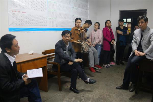 4月12号晚beat365官网领导和全体辅导员开展零点行动至凌晨3点后,4月13日晚21点,beat365官网领导和全体辅导员继续在男生大院宿舍管理中心集合,院党总支书记高峰、院长邓双喜、党总支副书记林琼、副院长杨兴华等领导带领各系辅导员老师,分组夜访学生宿舍,展开零点专项督查活动。