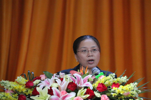 外国语学院贺学耘院长作为教师代表发言。她结合自己多年的教学经验告诫全体新生:第一,充实大学生活,做一名积极向上的大学生;第二是注重培养自己的品行和责任意识,保持本心;第三,学会微笑待人待事,因为“微笑,没有副作用” 。