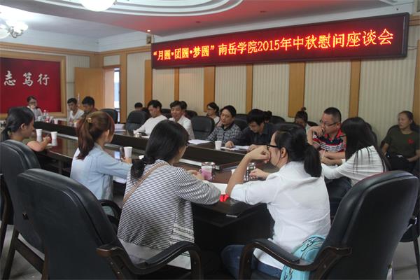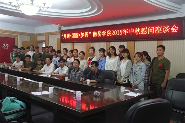 9月25日下午3:00,学院在行政楼308会议室举行2015年中秋节家庭经济困难学生慰问座谈会。学院党总支书记高峰、院长邓双喜、党总支副书记林琼、副院长杨兴华、学工办主任肖炜、各系辅导员老师及30名家庭经济困难学生代表参加了本次座谈会。座谈会由党总支副书记林琼主持。