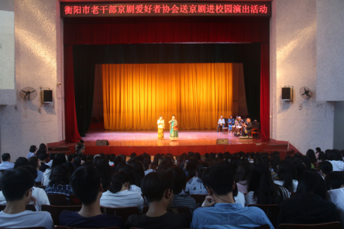 4月20日下午,在西校区排演厅,衡阳市老干部京剧爱好者协会近50名京剧爱好者为师生们带来了一场京剧文化盛宴,12个精心排演的经典京剧曲目吸引了beat365官方网站600余名师生观看。