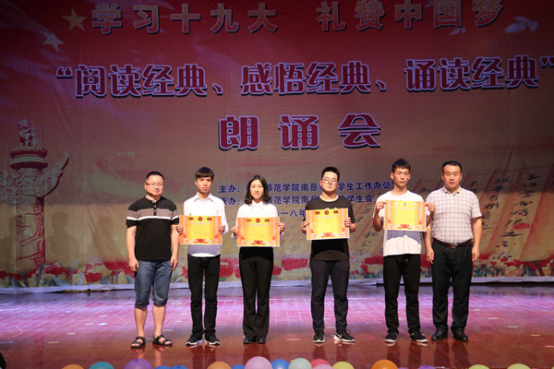 经过评选,最终2017级数学四班荣获一等奖,2016级汉语言文学三班、2016级美术一班荣获二等奖,2016级英语五班、2016级英语四班和2016级汉语言文学二班荣获三等奖,2016级地理科学一班、2017级体育二班、2017级数学二班、2016级地理二班获得优胜奖。最后,在热烈的掌声中,本次比赛圆满结束。
