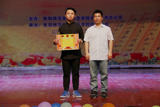beat365官方网站团委书记肖炜、学生工作办公室主任谢荣华为优胜奖获得者颁奖