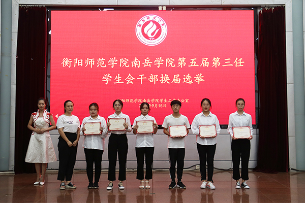 会议伊始,与会老师为第五届第二任学生会干部颁发聘书。肖主任发言,他对学生会过去一年的工作表示赞赏,强调新老学生会成员都应当时刻谨记自己的身份,严于律己,为建设好学生会贡献出自己的一份力量。