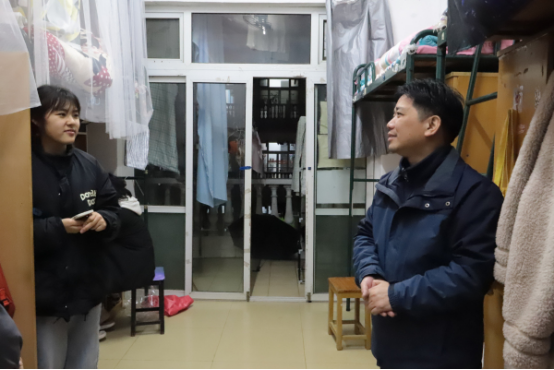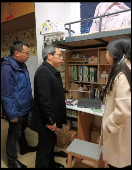 在走访过程中,学院领导向学生致以新春的问候与祝福,详细地了解学生的假期学习生活情况、毕业生的考研与就业情况,对同学们在疫情期间仍坚持学习、努力求职的态度给予肯定。他们亲切地与学生进行交流,认真听取学生各方面的意见和建议,并就相关问题进行了交流与探讨,针对大家共同关心的学习生活上的问题提出了积极的建议,同时叮嘱大家要提高疫情防控意识,注重个人防护和宿舍环境卫生,改善住宿环境,加强身体锻炼,练就强健体魄,并不断提醒同学们要时刻注意人身财产安全,调整好心态,合理作息,以饱满的热情投入到新学期的学习生活中去。