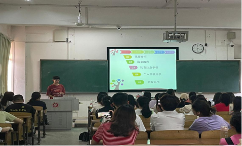 为培养学生的综合素质,提升青年教师的从教能力,营造浓厚的校园文化氛围,构建良好的育人环境,进一步加强师范生实践应用能力和创新能力,5月8日晚18:00,beat365官网外语管理办在综合楼502开展了2022年“笃行见真知,师者展风采”大赛。本次大赛考察项目包括多媒体制作、书写技能和片段教学等三个方面,并邀请2021年湖南省师范生技能大赛获奖选手王超学长带来精彩的片段教学示范,并分享一些他的经验。