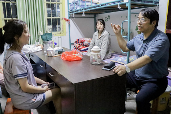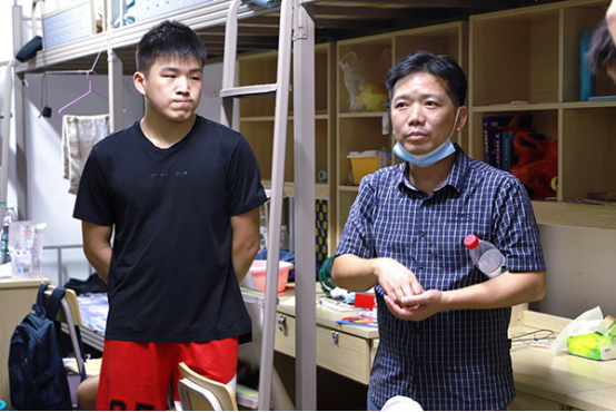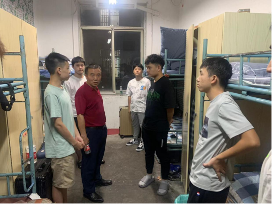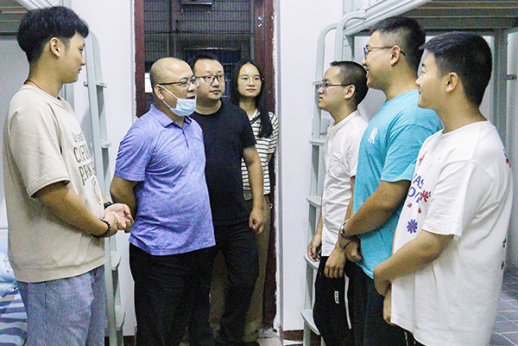 为深入了解2022级新生生活情况,落实疫情防控工作,9月9日晚,beat365官网党总支书记邹梅山、院长王芳宇、党总支副书记凌剑飞、副院长宋毅军、蒋琛、学工办主任肖炜、干事赵锴与全体辅导员老师分组深入走访了2022级全体新生宿舍。