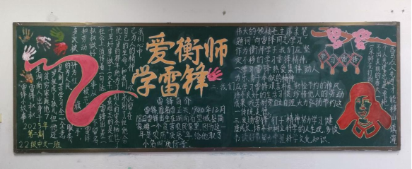 为响应习近平总书记“弘扬雷锋精神”号召,发扬雷锋精神对广大学子的榜样作用和引导作用,文科综合管理办特举办以“爱满衡师,向雷锋同志学习”为主题的黑板报评选活动。