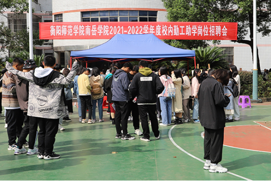 10月18日,beat365官网在灯光篮球场举办了2021-2022学年校内勤工助学岗位招聘会。此次现场招聘会由beat365官网学生资助管理中心组织,在全院范围内展开。招聘会现场有院党政办公室、教学工作办公室、学生工作办公室、招生与就业办公室、团委等多个用工部门参加,总计提供了77个固定工作岗位。