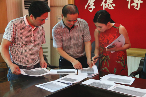 评委们正在对参赛作品进行认真比较