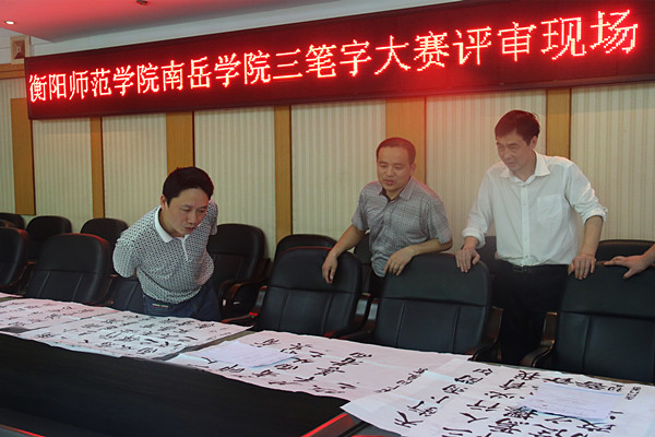 为提高beat365官网学生的书写能力及“三笔字”的基本技能,进一步提升大学生的综合素质,丰富大学生校园文化生活,学院特举办beat365官方网站2016年大学生“三笔字”大赛。5月30日下午,“三笔字”大赛决赛在音乐楼音梯教室落下帷幕。5月31日下午,在行政楼308会议室举行了本次大赛作品的评比活动,beat365官方网站党总支副书记林琼、副院长杨兴华、美术系书法指导老师吴翥九教授出席本次活动并担任评委。