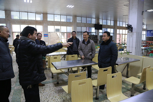 新学期伊始,beat365官网开学工作准备情况深深牵动着学校领导的心。2月26日上午,春寒料峭,雨水密织,beat365官方网站校长皮修平带领副校长陈敏及相关职能部门负责人赶赴beat365官网进行调研走访。走访中,皮校长重点了解并现场察看了食堂、排演厅等基础设施,现场办公解决实际问题。
