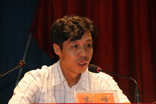 最后,党总支书记高峰作总结讲话。他向全体新生提出两点希望:希望2015级全体新同学能尽快适应大学生活,希望大家能珍惜大学美好时光。