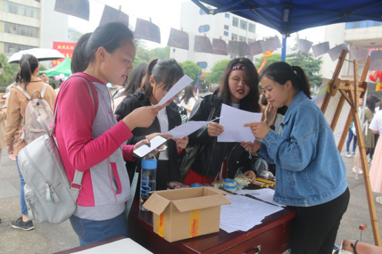 4月21日,学院第三届校园社团文化艺术节在新世纪广场隆重举行开幕式。烈日炎炎,挡不住同学们的期盼。怀着无比的期待,广大学子积极参加了此次社团文化艺术节的开幕式,各社团精心准备的开幕小活动琳琅满目,迅速点燃了学子们的热情。青年志愿者协会发放涂鸦环保纸袋的活动台前井然有序的排满了人群,27度文学社灯谜活动、传承书法协会百米宣纸活动、政法协会法律知识竞答游戏、英语俱乐部猜单词游戏、英语演讲协会英美国家相关知识竞答、演讲与口才协会绕口令活动、计算机协会电脑维修等活动也有条不紊的进行着,一场场别开生面的活动吸引着学子们驻足停留,个个展台热闹非凡,现场气氛浓厚,赢得了一致好评。