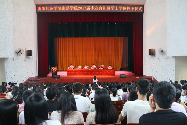 典礼分三个流程进行:宣读表彰决定并颁发证书、颁发毕业证书和学位证书、师生代表讲话。党总支副书记周华宣读了《关于表彰湖南省普通高等学校2017届优秀毕业生和自主创业优秀毕业生的通报》,副院长蒋琛、宋毅军先后宣读了《关于表彰2017届优秀毕业生的决定》、《关于授予陈慧鑫等1019名2017届本科毕业生学士学位的决定》,与会领导为受表彰的优秀毕业生及毕业生代表颁发了各项证书。