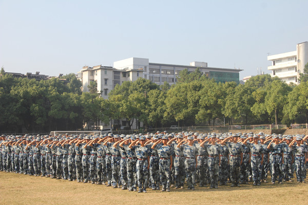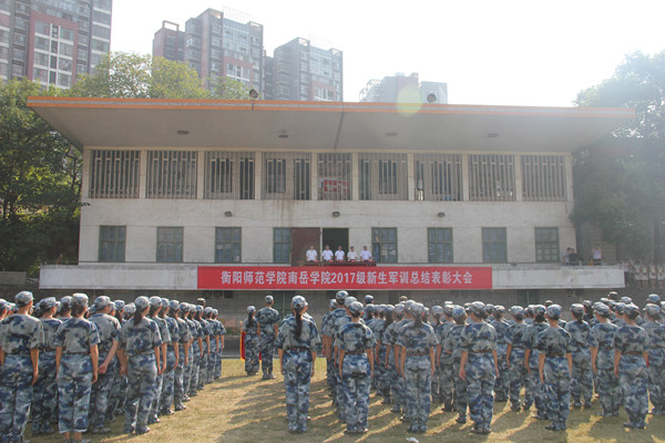 最后,在悠扬的校歌声中,beat365官网2017级新生军训总结表彰大会圆满结束。